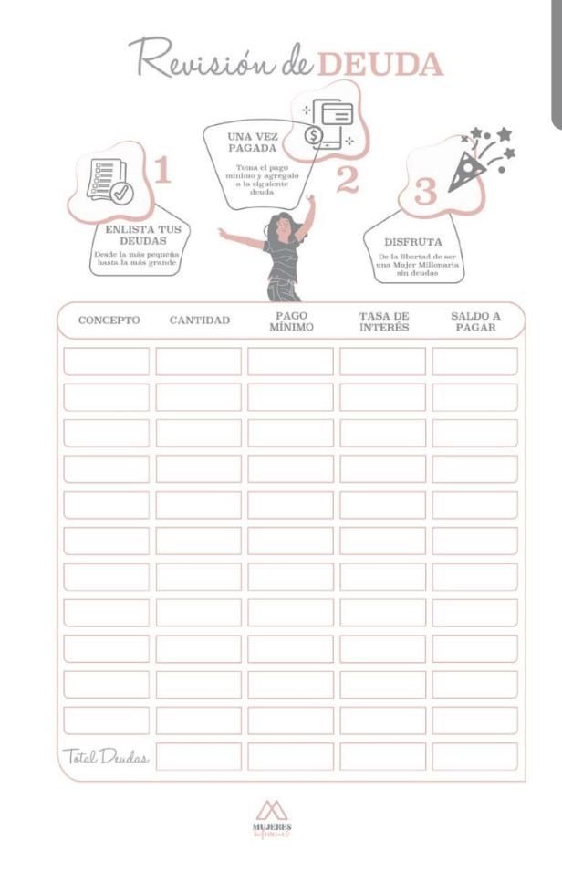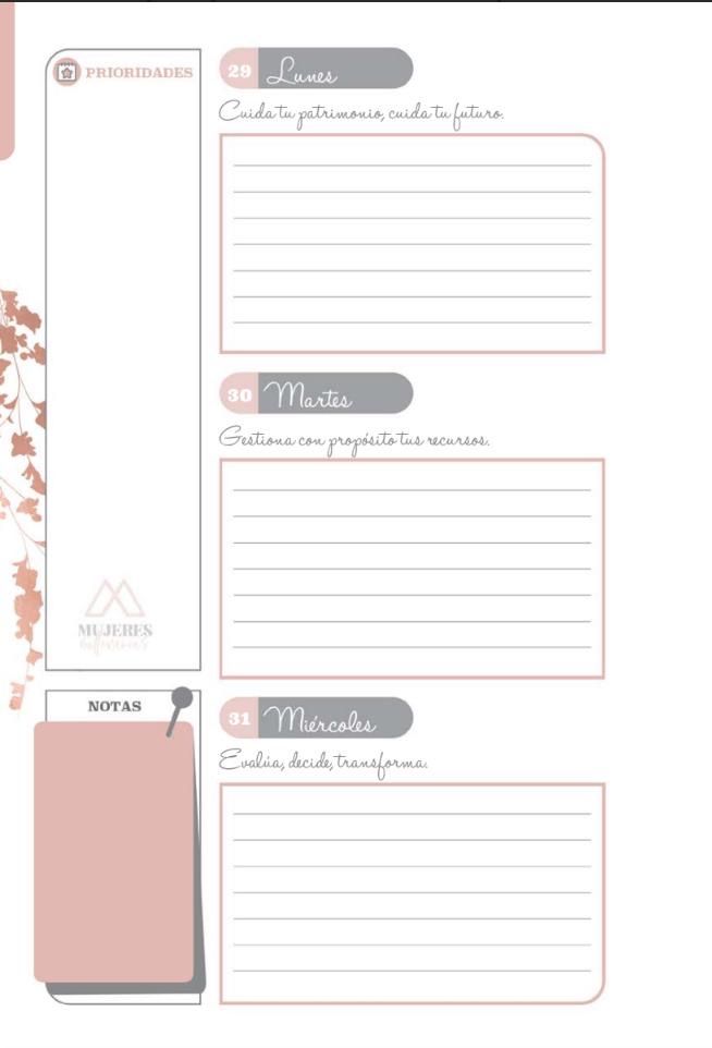 En esta plantilla encontrarás todo lo que requieres para planear tu semana: Prioriza lo importante, registra tus ingresos y gastos, monitorea tus hábitos, identifica tus logros e incluso concientiza alguna tarea importante de la próxima semana